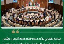 البرلمان العربي يؤكد دعمه التام لوحدة اليمن، ويثمن جهود السعودية والإمارات في خفض التصعيد واستعادة الأمن والاستقرار