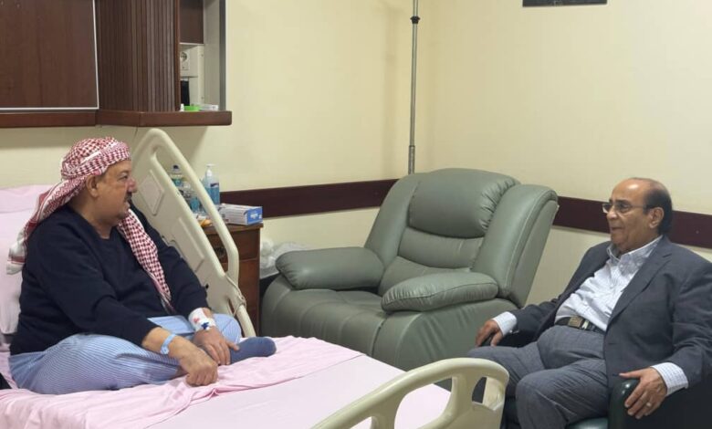 عضو مجلس القيادة الرئاسي الدكتور عبدالله العليمي يزور رئيس مجلس النواب للاطمئنان على صحته