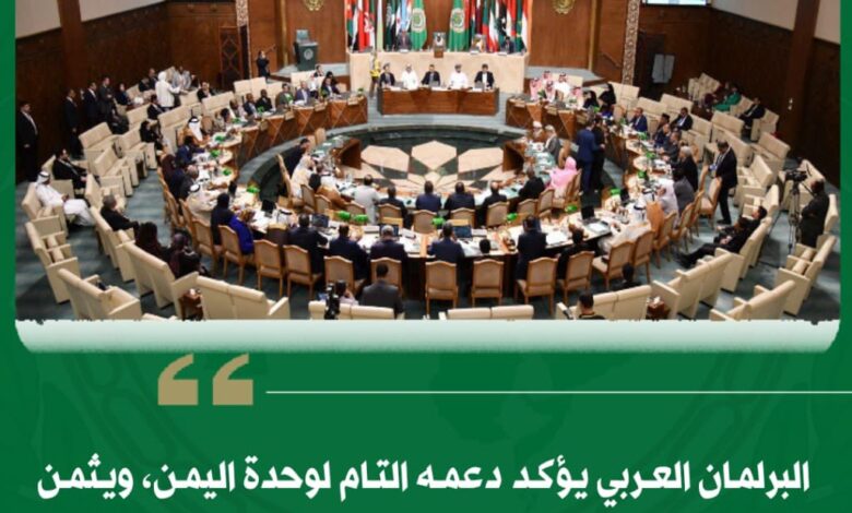 البرلمان العربي يؤكد دعمه التام لوحدة اليمن، ويثمن جهود السعودية والإمارات في خفض التصعيد واستعادة الأمن والاستقرار