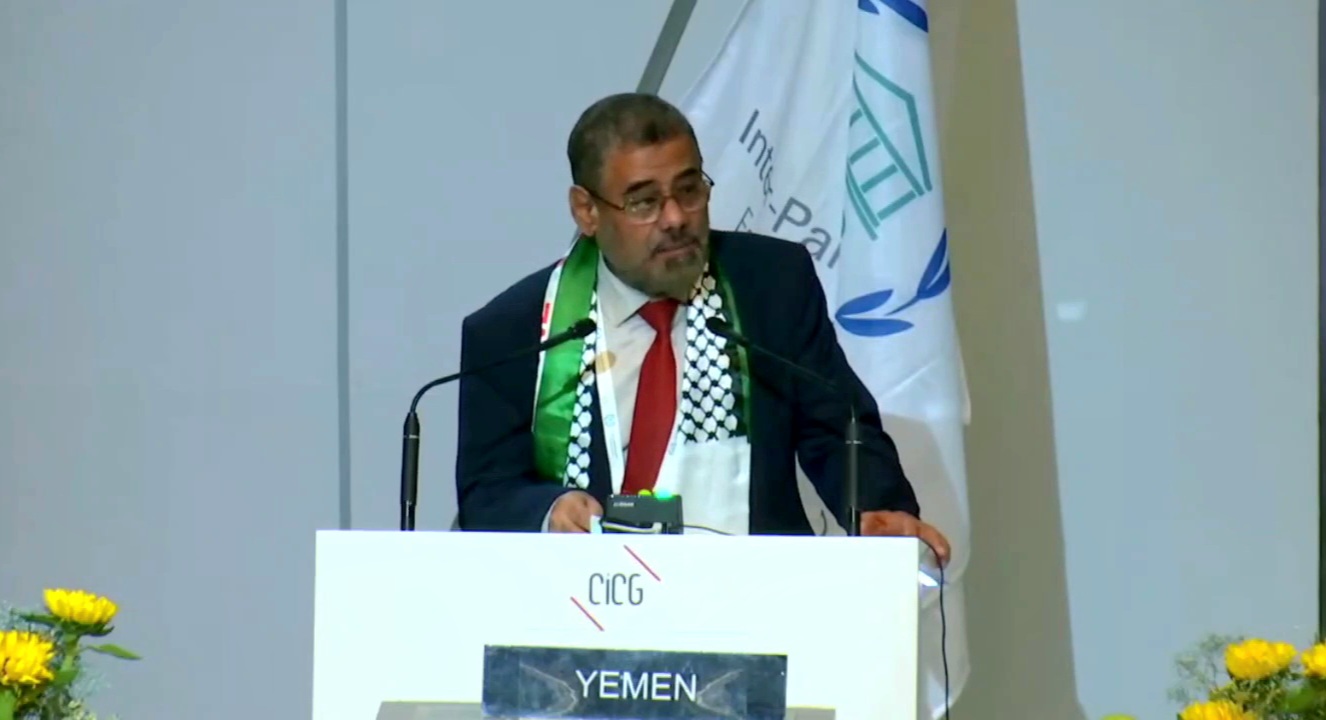 كما أدان نائب رئيس المجلس الجرائم الإسرائيلية بحق الشعب الفلسطيني في غزة، داعيًا البرلمانات الأعضاء إلى الاعتراف بدولة فلسطين، ووقف الاتفاقات العسكرية مع الكيان الإسرائيلي، وتنفيذ قرارات محكمة الجنايات الدولية بحق قادته كمجرمي حرب.
